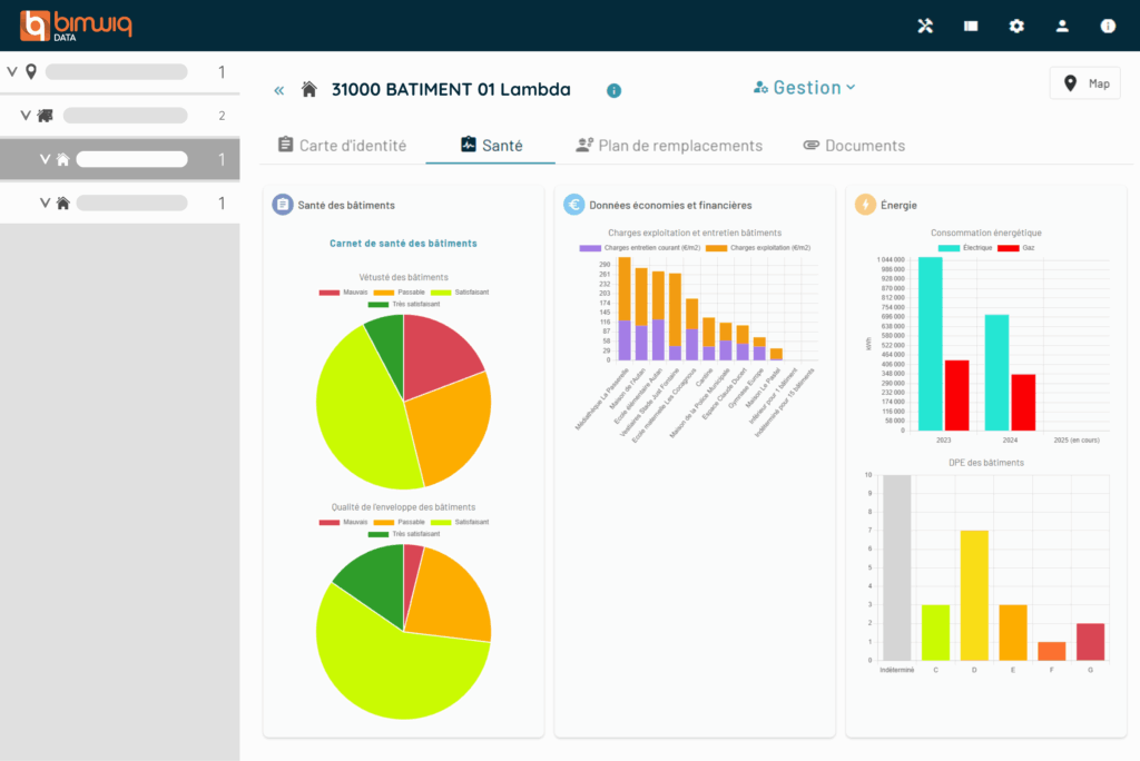Consultez plusieurs informations en même temps, sans jongler entre les écrans. L’interface multi-vues de bimwiq DATA affiche côte à côte les données clés d’un bâtiment pour gagner du temps et décider plus vite.